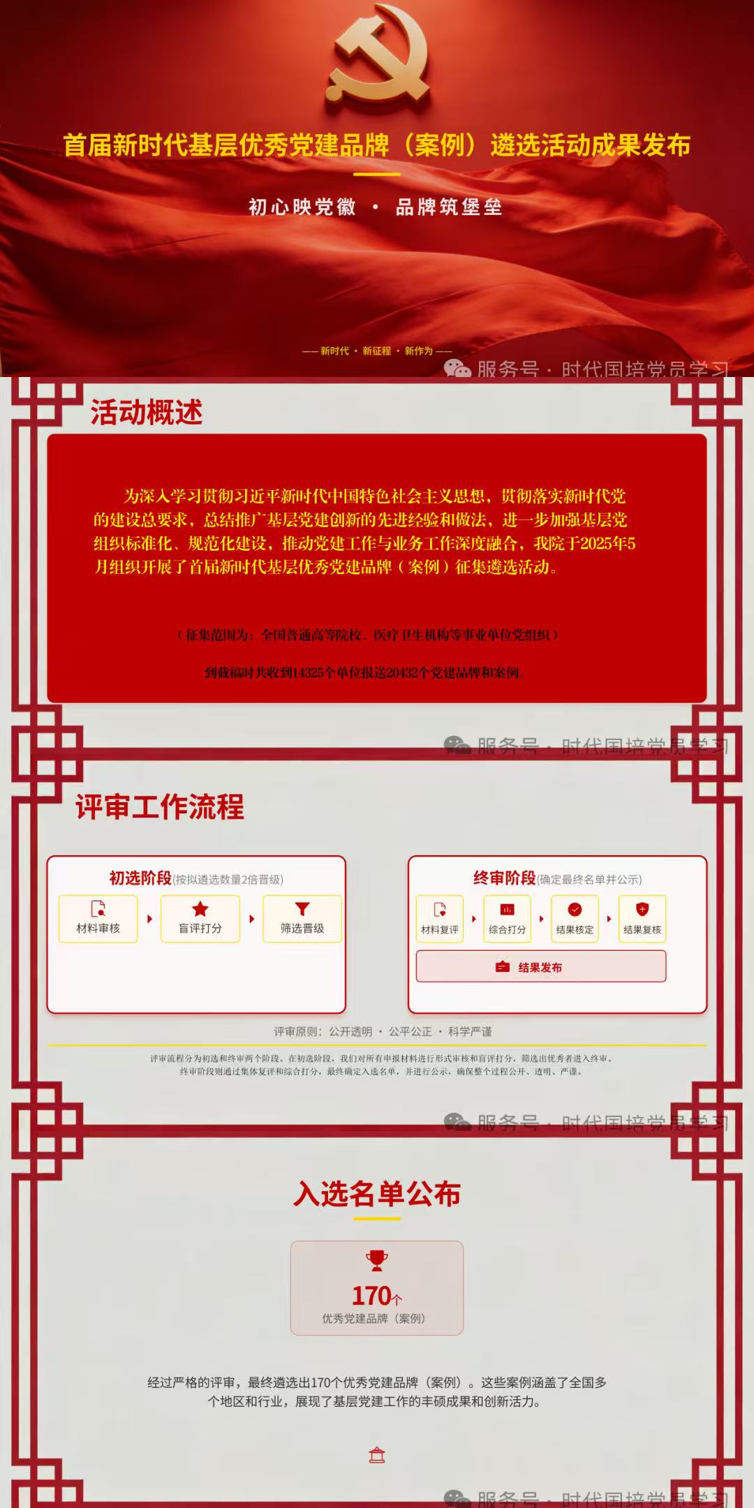 首届新时代优秀基层党建品牌案例遴选工作自2025年5月启动以来,共收到全国4325个单位报送的20432个基层党建品牌案例。经组织专家按照政治首位、党业融合、创新实用、客观公正、实效导向的原则严格评审,最终遴选出170个基层优秀党建品牌案例,女王调教视频 研究生党支部和教工第二党支部申报的党建品牌案例成功入选。